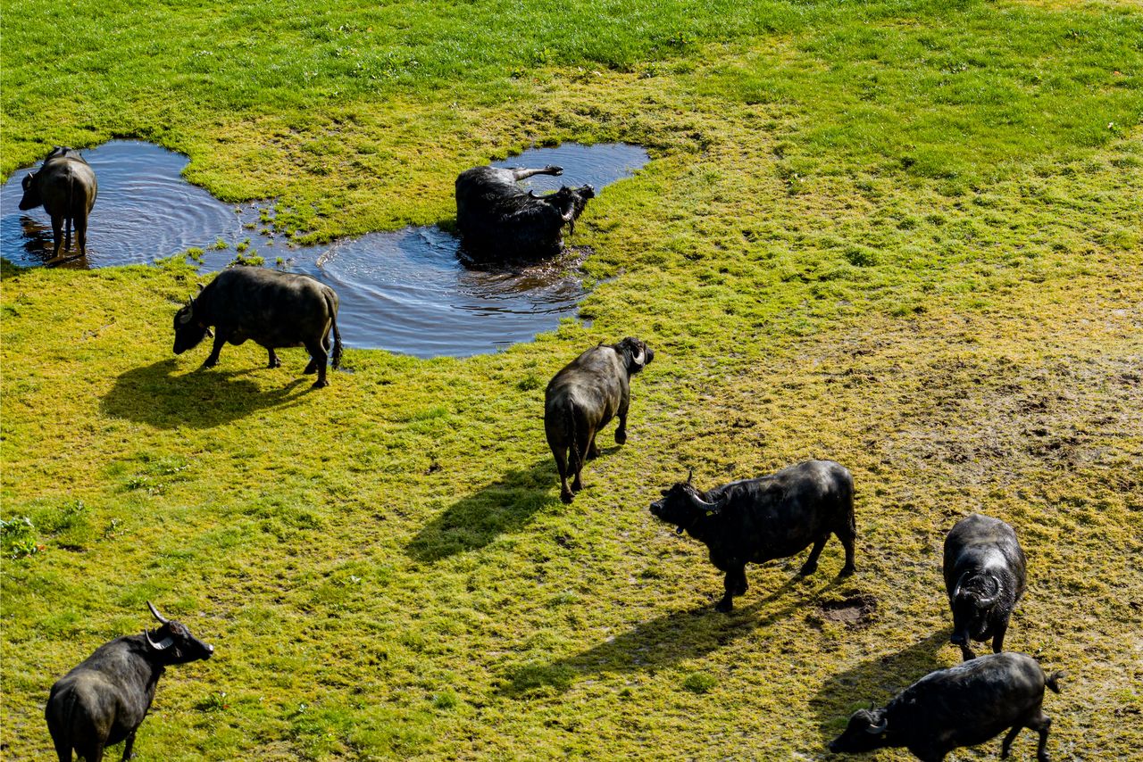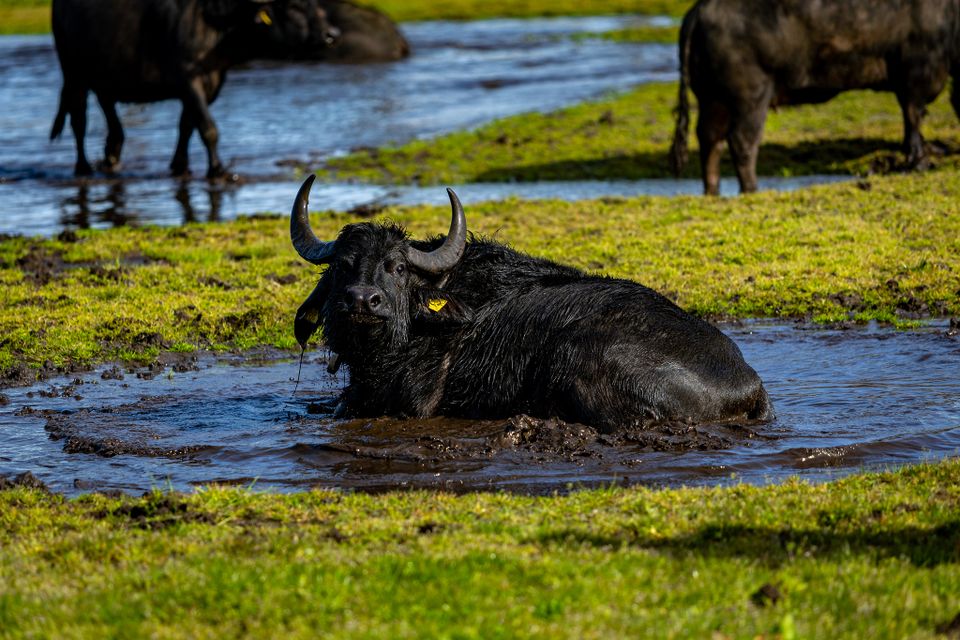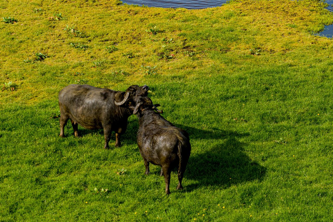 Op Tweede Paasdag was het feest bij waterbuffelboerderij D’n Buff! Voor het eerst dit jaar mochten de buffels weer de wei in en dat trok volop publiek. Langs de weg stond een lang lint van bezoekers te genieten van de uitzinnige, knorrende en huppelende buffels die het verse gras en de frisse poelen opzochten.
