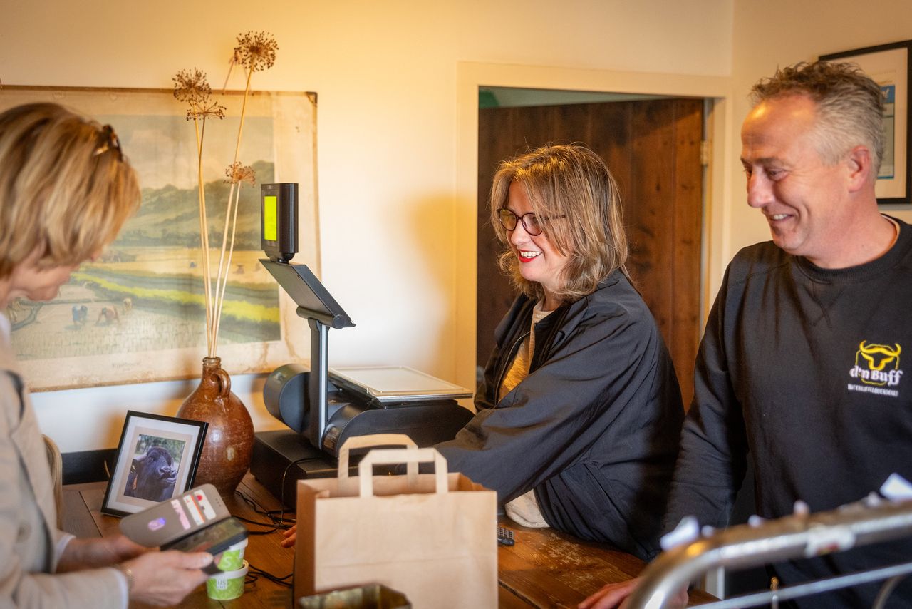 Daarna stroomde het erf vol met nieuwsgierigen. Er werd rondgekeken bij de dieren én volop geproefd: van romig ijs en verse mozzarella tot burrata, yoghurt en zelfs worstenbroodjes, burgers en bitterballen. Allemaal van eigen buffelmelk of vlees en te koop in de boerderijwinkel.
