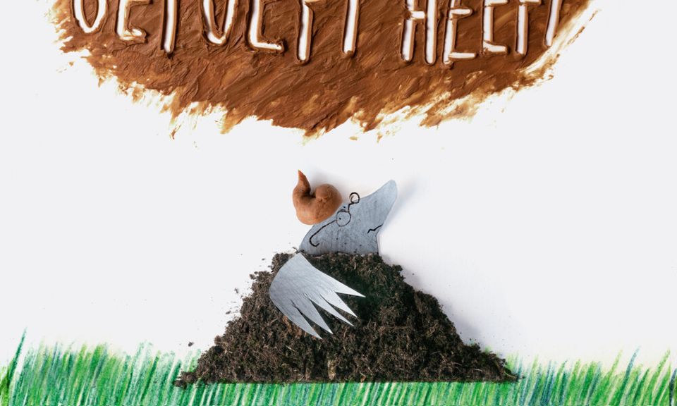 Mol komt boven om te kijken of de zon al op is als er ineens op zijn kop gepoept wordt. Kak! Wat goor!