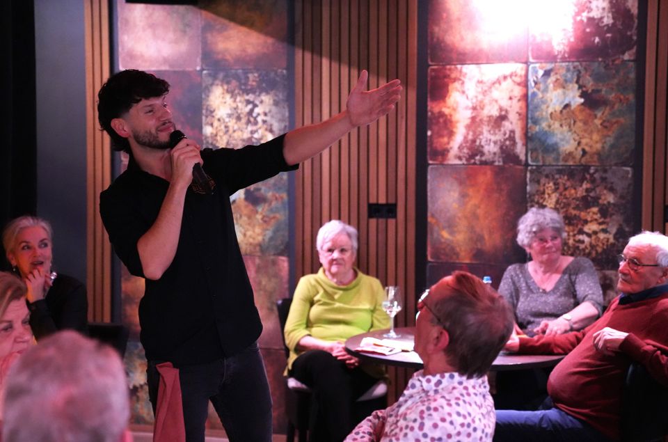 Kosten : € 62,50 p.p. voor 4 uur entertainment met 6-gangen diner